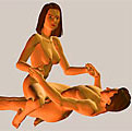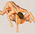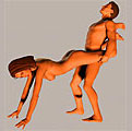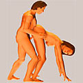 男性が後ろから女性を責める標準的な後背位。動物の交尾では基本的な体位であるだけに、非常に動物的な、そして本能に訴えるところの強い性交体位です。リズムを崩さずに責め続ければ、必ず女性が大きな声でよがり泣きを始めます。どんなに女性が泣いても、許すことなく責め続ければ、間違いなく昇天させることができます。女性のよがり声を堪能するには最適の体位です。