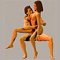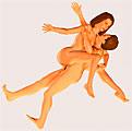 座った男性の上に女性が同方向を向いて抱きかかえられる体位。ちょうど子供を抱きかかえて食卓に向かったのと同じような状態が基本です。挿入して責めながら、乳房を愛撫する、すなわち、下半身では許すことなくいじめながら上半身をやさしく甘やかしてやることができます。お仕置きをしながら可愛がる味には格別なものがあります。女性の体重を座った格好の男性が受け止めるような形でになるので、速度を上げて腰を使うことができません。女性の体重を有効に利用して責めることがこの体位のコツになります。抱きかかえた女性の上半身を上に持ち上げてから下に落としてやるようにすると、女性は自分の体重で勢いよくペニスを奥深いところまで突き立てられることになります。