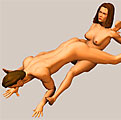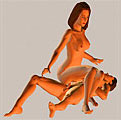 後ろから挿入する体位ですが、女性が男性の上に跨って乗ります。女性器がペニスに当たる角度としても面白く、また女性にとってリズムを取りやすい体位なので、女性に腰使いを仕込む際にも有効な体位です。女性の尻をスパンク(平手打ち)するのにも適した体位です。スパンキングの効果は決して痛みそのものではありません。次のスパンキングがいつ来るのかという不安感、尻を叩かれる適度な刺激、平手打ちの音、思わずもらす悲鳴などがすべて合わさり、相乗効果を上げて性感を高めます。上手に腰を振ることができるようになると、女性はかなりの速度で上下運動を繰り返し、自分で我が身を責めながら勝手にクライマックスまで昇りつめるようになります。