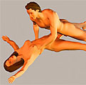 男性が女性に覆い被さる基本的な体位。男性の体が上から女性に覆い被さるので、クリトリスへの刺激が女性の性感を高めます。心理的には、男性が加害者、女性が被害者、という立場になります。この体位で特に効果的なのは腰枕の使用です。女性の腰の下に柔らかい枕、もしくは座布団を二つ折りにしたものなどをあてがいます。こうすることによって女性の恥部が上向きにさらけ出されます。ペニスを挿入すると、普段よりも深く奥の奥まで突き刺すことができるようになります。上手に腰枕を当ててやると、別人の女性と交わっているような味わいを楽しむことができます。特に女性器が「下付き」気味の女性には絶大な効果があります。