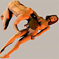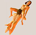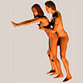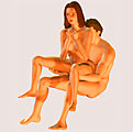 男女が立ったまま向かい合う体位。体力勝負の性交体位です。「駅弁ファック」などが有名ですが、女性の体重が快感を増すことに役立つことはなく、かえってその重量がマイナスに働いて、男女とも腰を使うことが難しくなるので動きが鈍くなります。しかし「強い男」を演出する雰囲気作りには有効です。