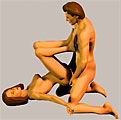 女性が男性に覆い被さる体位。女性が主導権を握る体位と言われますが、実際には行為の最中に男性が女性の顔や上半身をはっきりと鑑賞することができるので、女性の反応を確認しながら下からリズムを作って着実に追い込んでやることができる形です。女性がオルガズムに近づいたところでその上半身を前に倒させ、逃げることができないようしっかりと腰を抱え込んで早いリズムで下から突き上げて責めます。