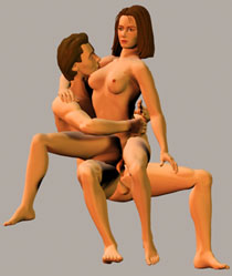 男が椅子に座る。女を抱き寄せ、男の片方の腿にまたがらせて挿入する。別名、地蔵抱き。