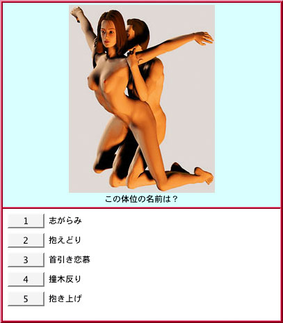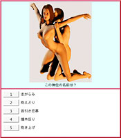 揚羽本手 (あげはほんて) 網代本手 (あじろほんて) 筏茶臼 (いかだちゃうす) イスカとり (いすかとり) 入り船本手 (いりふねほんて) 石清水 (いわしみず) 浮き橋 (うきはし) うぐいすの谷渡り 後ろづけ (うしろづけ) 後櫓 (うしろやぐら) 後ろ矢筈 (うしろやはず) 内枠 (うちわく) 押し車 (おしぐるま) 織り茶臼 (おりちゃうす) 抱えどり (かかえどり) 鏡茶臼 (かがみちゃうす) 鴨の入首 (かものいりくび) 唐竹割り (からたけわり) 雁が首 (かりがくび) 菊一文字 (きくいちもんじ) 砧 (きぬた) 首引き恋慕 (くびひきれんぼ) 壽本手 (ことぶきほんて) 炬燵かがり(こたつかがり) 炬燵隠れ (こたつがくれ) 零松葉 (こぼれまつば) 御所車 (ごしょぐるま) 碁盤責め (ごばんぜめ) 逆手からみ (さかてからみ) 下がり藤 (さがりふじ) 笹舟本手 (ささぶねほんて) 座禅ころがし (ざぜんころがし) 志がらみ (しがらみ) しき小股 (しきこまた) 時雨茶臼 (しぐれちゃうす) 獅子舞 (ししまい) 忍び居茶臼 (しのびいちゃうす) 絞り芙蓉 (しぼりふよう) しめ小股 (しめこまた) 〆込み千鳥 (しめこみちどり) 〆込み錦 (しめこみにしき) 撞木反り (しゅもくぞり) 巣篭もり (すごもり) 裾野 (すその) 反り観音 (そりかんのん) 宝船 (たからぶね) 襷がけ (たすきがけ) 立ちかなえ (たちかなえ) 立ち花菱 (たちはなびし) 立ち松葉 (たちまつば) 立て膝とり (たてひざとり) 俵抱き本手 (たわらだきほんて) 抱き上げ (だきあげ) 抱き地蔵 (だきじぞう) 達磨返し (だるまかえし) 千鳥 (ちどり) 千鳥の曲 (ちどりのきょく) 茶臼がらみ (ちゃうすがらみ) 茶臼伸ばし (ちゃうすのばし) 突き回し (つきまわし) 月見茶臼 (つきみちゃうす) 机がけ (つくえがけ) 燕返し (つばめがえし) つぶし駒掛け (つぶしこまがけ) 釣瓶落とし (つるべおとし) 手懸け (てがけ) 梃子かがり (てこかがり) 富車 (とみぐるま) 鳴門 (なると) 虹の架け橋 (にじのかけはし) 花葵責め (はなびしぜめ) 浜千鳥 (はまちどり) 番外(ばんがい) ひよどり越え (ひよどりごえ) ひよどり越えの逆落とし (ひよどりごえのさかおとし) 白光錦 (びゃっこうにしき) 二つ巴 (ふたつともえ) 仏壇返し (ぶつだんがえし) 帆かけ茶臼 (ほかけちゃうす) 本駒がけ (ほんこまがけ) 本茶臼 (ほんちゃうす) 松葉崩し (まつばくずし) 松葉反り (まつばぞり) 窓の月 (まどのつき) 卍崩し (まんじくずし) 乱れ牡丹 (みだれぼたん) 深山本手 (みやまほんて) 手椋鳥 (むくどり) 八重椿 (やえつばき) 櫓立ち (やぐらだち) 八つ橋 (やつはし) 流鏑馬 (やぶさめ) 横取り (よこどり) 横笛 (よこぶえ) 寄り添い (よりそい) 理非知らず (りひしらず)