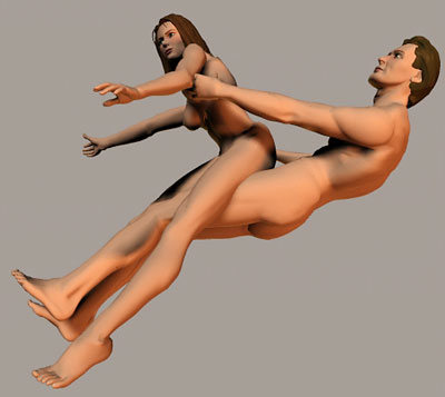 | 【究極のスローセックス体位:責め】 2時間や3時間は平気で持続できる究極のスローセックスを可能にする「責め」の形です。いくら「スローセックス」といっても浅い快感しか伴わない交接では退屈です。横臥位で後ろから挿入して充分に試運転をしたところで、下記の体位に移行します。ペニスを抜く必要はありません。 |