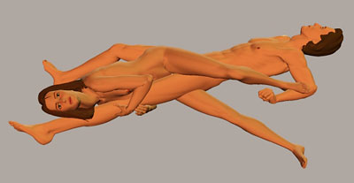 この体位だと確実に女性がオーガズムに達することが可能であるばかりでなく、ほとんどの場合、続けて何度も絶頂に達します。 女性がぐったりとなって「終わったかな」と思ったら、容赦なくここから男性が腰を使って責めると、さらに再び「いかせる」ことができます。面白いように何度でもオーガズムを与えることのできる体位です。 |